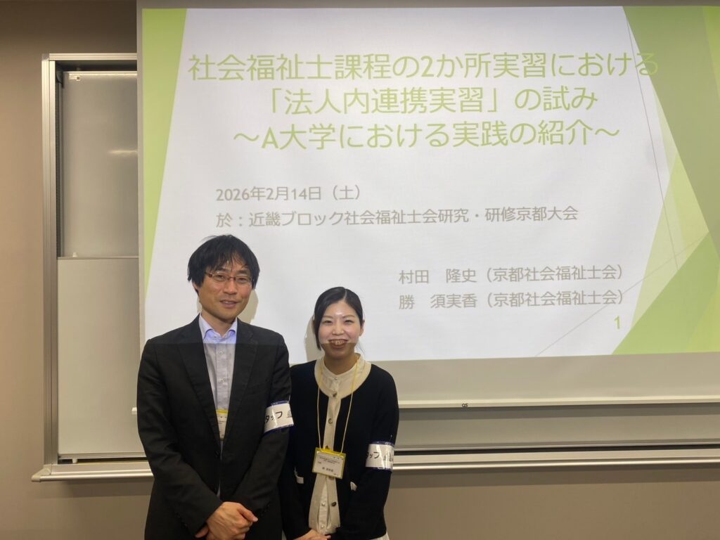 2月14日(土)~15日(日)に社会福祉士会主催の、近畿ブロック社会福祉士会研究・研修京都大会(会場:花園大学)が開催され、福祉社会学科の教員(村田隆史)が卒業生と共同で「実践報告」を行いました。